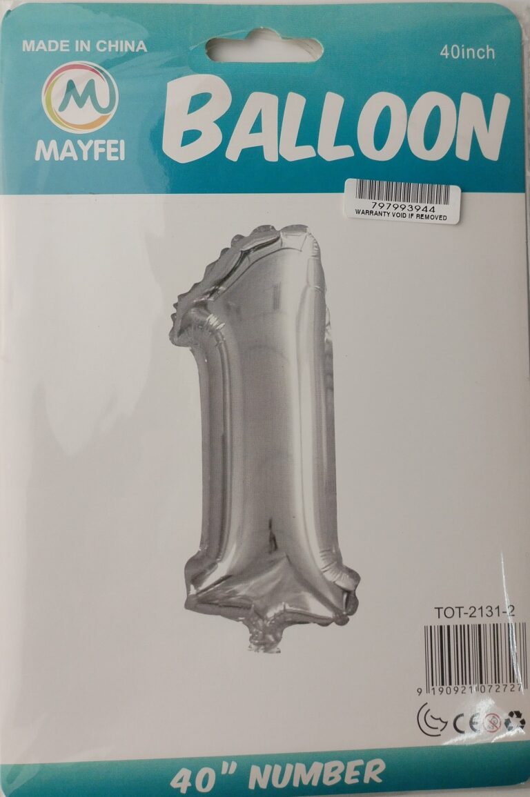 Casey 102cm Silver Balloon Number.1 Retail Packaging No