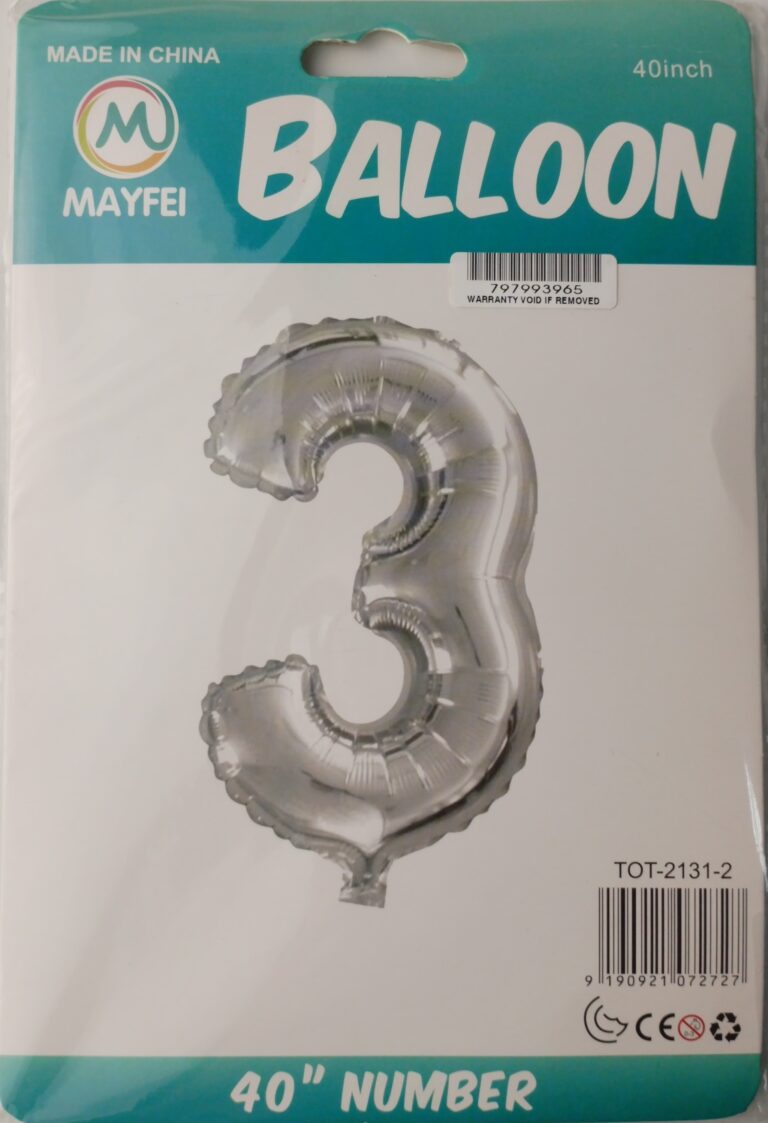 Casey 102cm Silver Balloon Number.3 Retail Packaging No