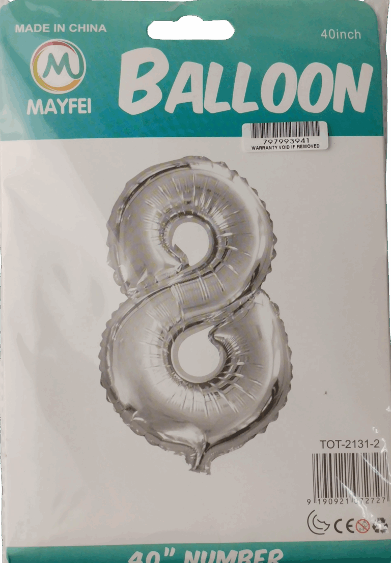 Casey 102cm Silver Balloon Number.9 Retail Packaging No