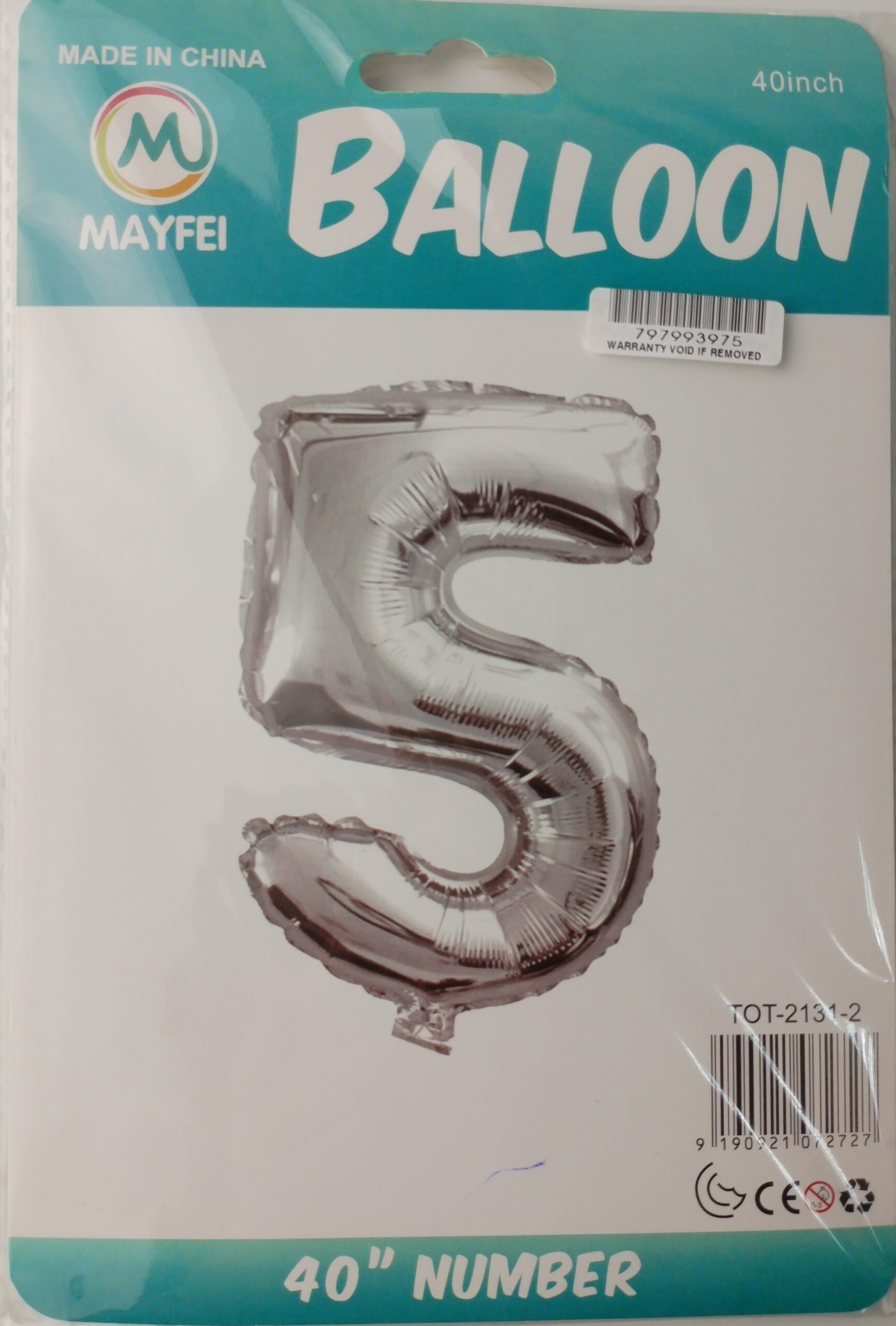 Casey 102cm Silver Balloon Number.5 Retail Packaging No Warranty