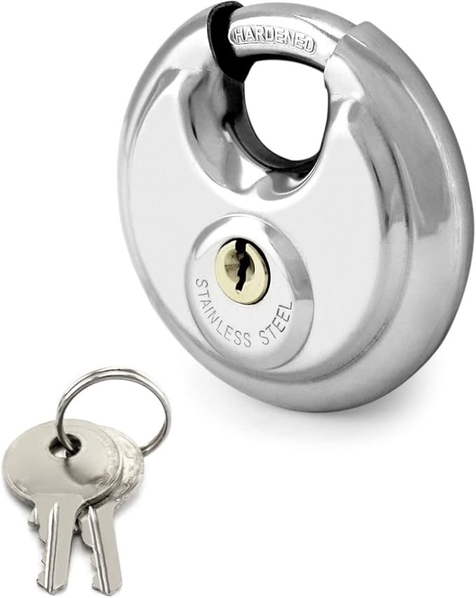 Noble Stainless Steel Disc Padlock – 70mm Padlock Size, Stainless Steel Armor Outer Shell, Weatherproof, Rustproof, Waterproof, Fits Most Storefront Gate Receptacles, 2 Keys Included, 1 Month Warranty