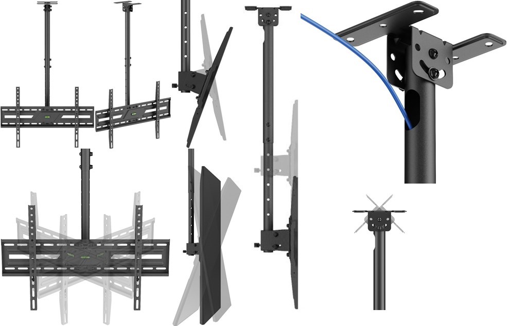 Unimount TV Ceiling Mount – Versatile Overhead Viewing Solution Elevate your display setup with the Unimount TV Ceiling Mount, designed for 37″ to 86″ screens supporting up to 50kg, featuring an adjustable ceiling plate, free-tilting design, and swiveling arm for optimal angles. Enjoy precise positioning with levelling adjustments, telescoping height customization, and integrated cable management to keep wires organized and out of sight. Perfect for commercial, home theater, or gym installations, this robust mount ensures secure, flexible TV placement from above.